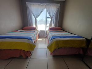 Three tiled bedrooms, each with built-in wardrobes