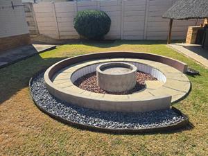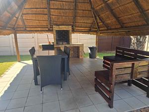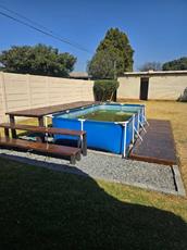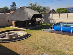 Outside you will be surprised with a lovely firepit, lapa with build in braai and pool with wooden deck.