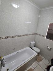 Sunny side up with 2 spacious bedrooms, with build in cupboards, all neatly tiled, 2 bathrooms, so first bathrooms offers, shower, basin and toilet. Main on suite is a bath, toilet and basin.
