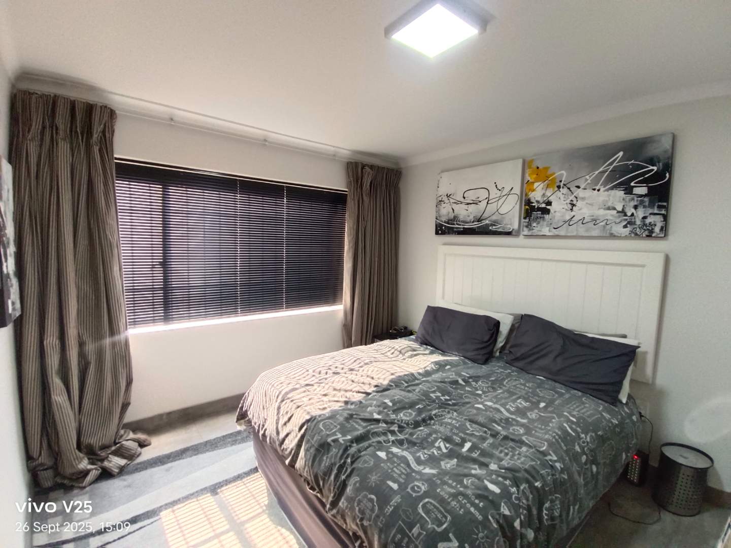 The main bedroom is exceptionally spacious, complete with built-in cupboards (BIC) and quality blinds, offering a serene retreat at the end of the day. Two additional bedrooms provide ample space, with one featuring sliding doors that open to the garden, enhancing the indoor-outdoor living experience. The contemporary bathroom boasts a large shower, toilet, and basin, designed with modern aesthetics in mind.