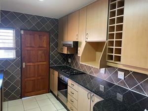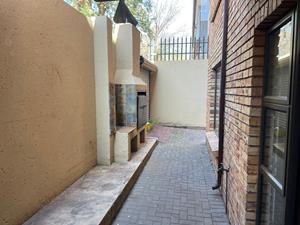 This unit offers an open plan kitchen, lounge area that leads out onto a patio with a built in braai.