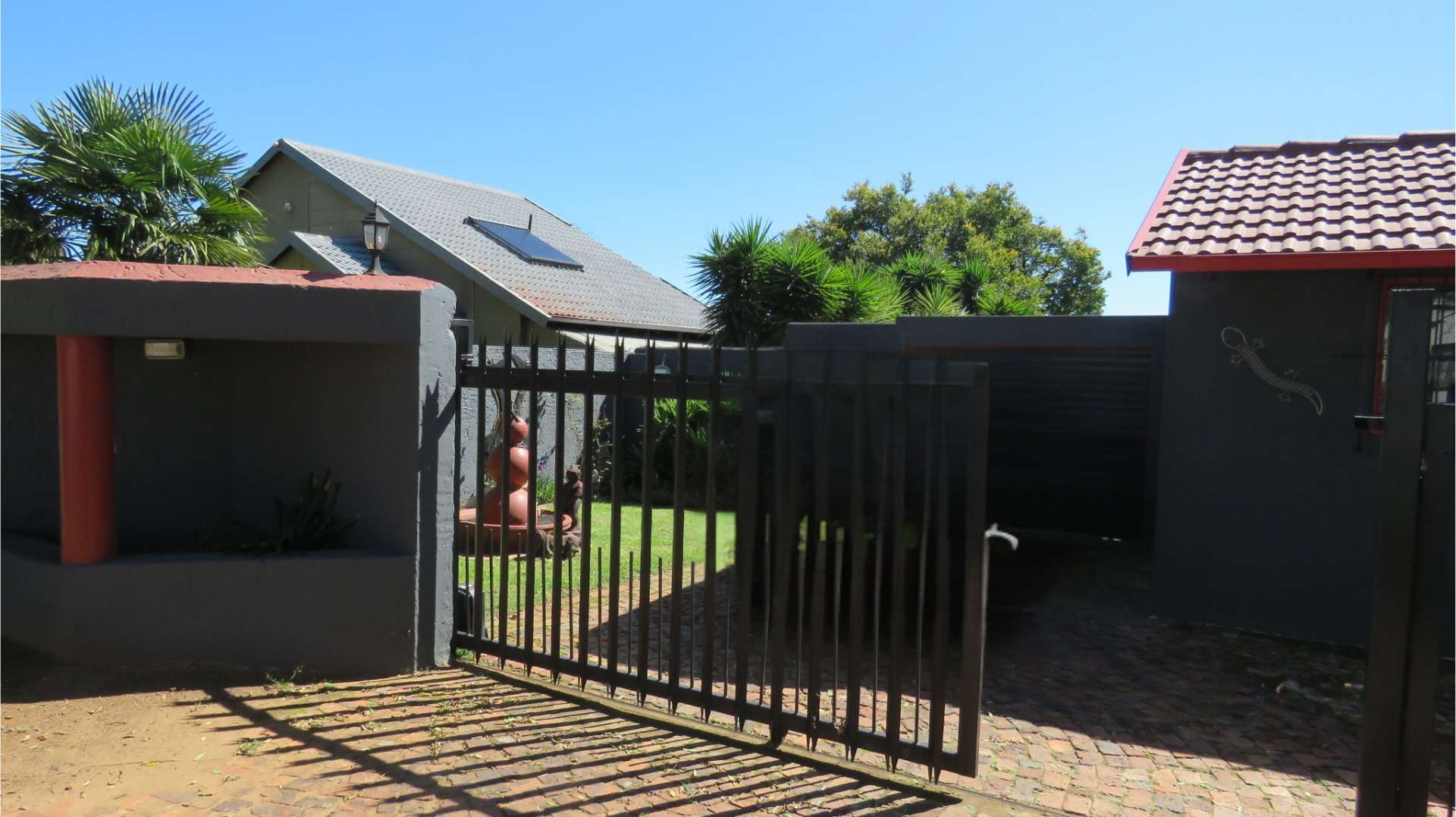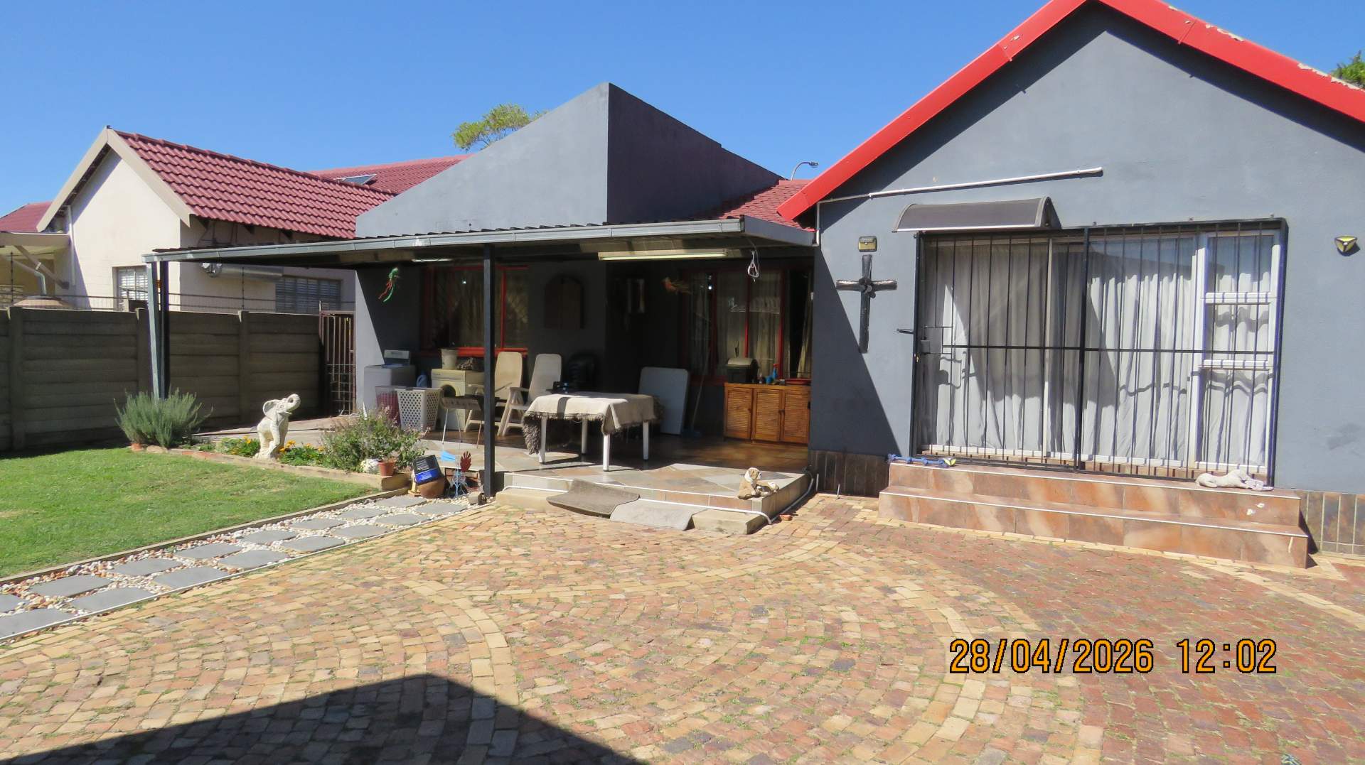 Outside, the rhythm shifts to easy living and entertainment. A covered patio creates the ideal braai spot or quiet retreat, overlooking a garden with a sparkling pool ready for sunny afternoons. Parking is more than covered, with a double garage, double carport, and additional space for visitors.