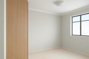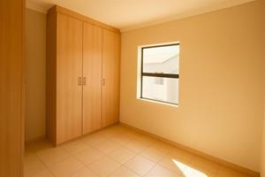The open-plan layout seamlessly connects the kitchen and lounge area, creating a bright and relaxed atmosphere filled with natural light. Both bedrooms are well-sized and include built-in cupboards, while the bathroom is tastefully tiled for a clean, contemporary look.