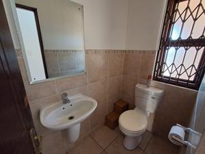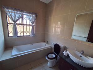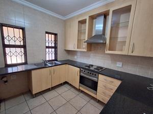 Downstairs is home to a marvelous kitchen, lounge and dining, guest toilet. The kitchen with granite tops and space to fit all your kitchen appliances. From the lounge you can walk out to your own private garden with patio and built-in braai