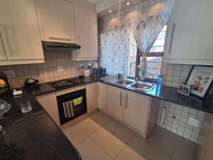 The home has been beautifully renovated - open plan from the sunlit spacious lounge to the kitchen. The kitchen has wonderful modern touches, granite counter tops, space for a double door fridge and ample storage space for all kitchen essentials