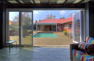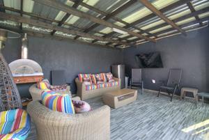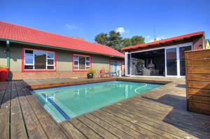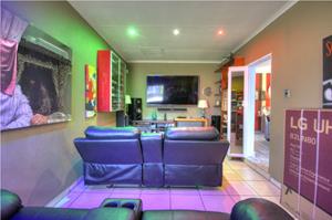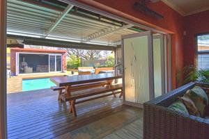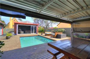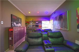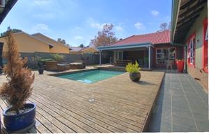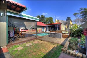 Excellent location in the heart of Area! This totally upgraded winner offers welcoming entrance hall, massive tiled lounge with feature fireplace, separate dining room, massive state of the art kitchen with granite tops and gas stove , 4 spacious sun filled- north facing bedrooms. 2 FULL upmarket bathrooms (shower), private study, sunken cinema room, large family room with built in braai with aluminum stacker doors onto covered entertainment deck overlooking sparkling pool and firepit boma area. massive poolside room with stacker doors onto full wood decking area around the pool. built in braai, 4 carports, double automated garages, koi pond plus loads more. tight security including cctv camera's , motion beams, full alarm are some of the many extra's here. Hurry, one of the most prestigious homes ever offered in Brackendowns...CALL NOW