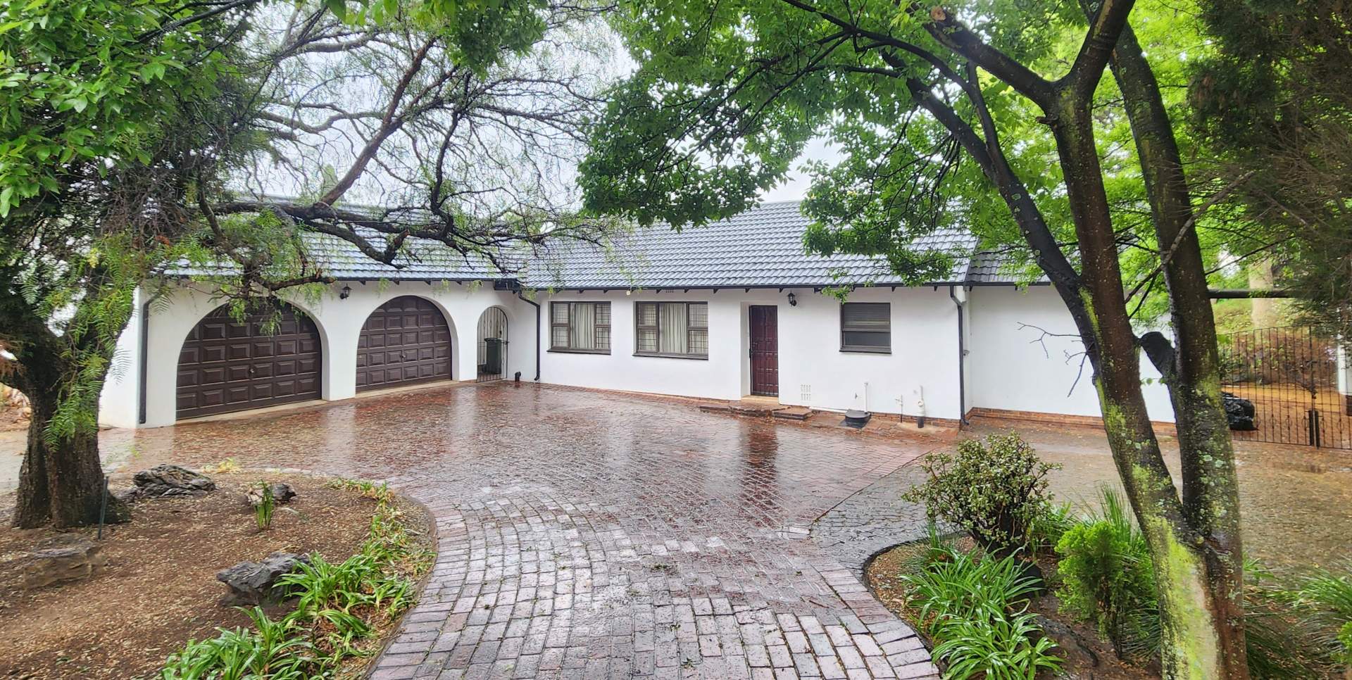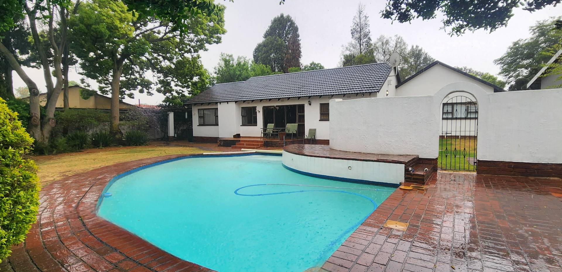 Totally redone and super neat with alliminium windows throughout. Absolutely neat and ready to move in. 2 massive bedrooms (laminate floors) , brand new upmarket bathroom, massive lounge with double sliders leading onto tiled patio overlooking sparkling renovated pool set in beautiful gardens with century old trees. Full fitted kitchen , full staff accommodation, double garages plus so much more! Loads of room for expansion. Suitable for a small family wanting total privacy and independence....why buy a townhouse or cluster??
