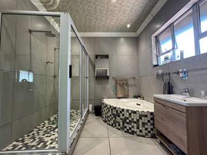 Massive Main En-Suite (Corner bath, Double shower, Basin and toilet with Walk-In Bic's and Blinds) with a stunning Ceiling feature