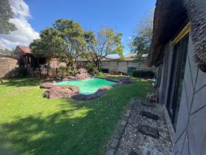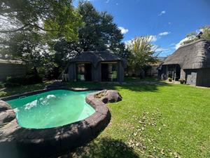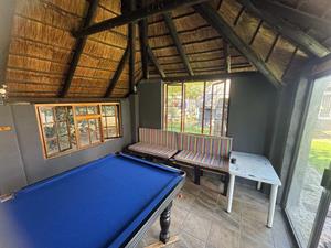 Additional thatched Entertainment Room with another Built-in braai and sliding door