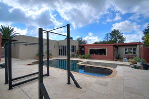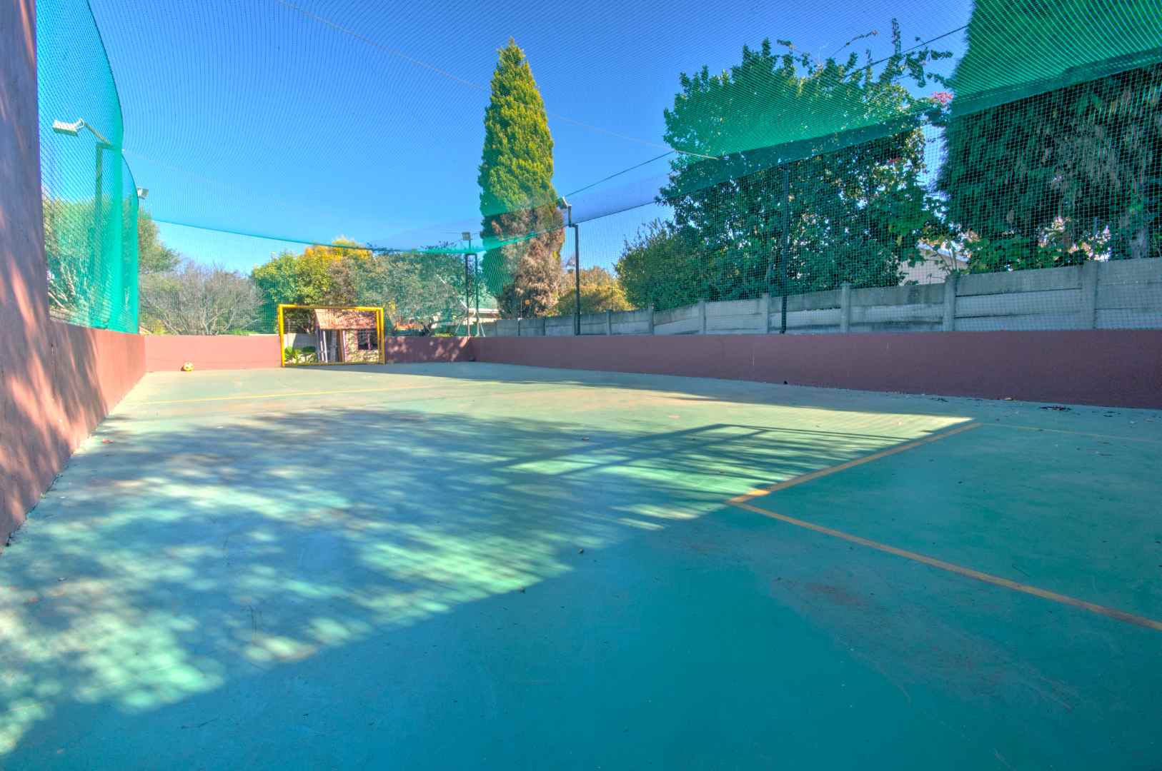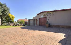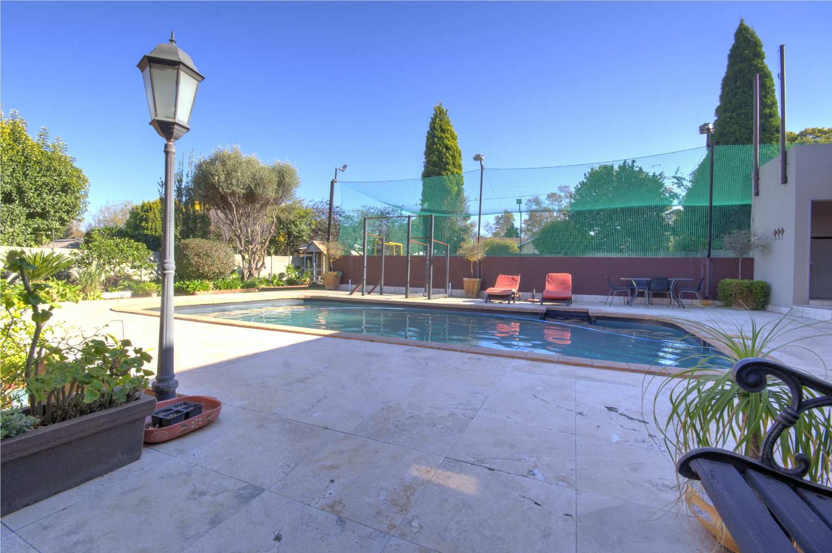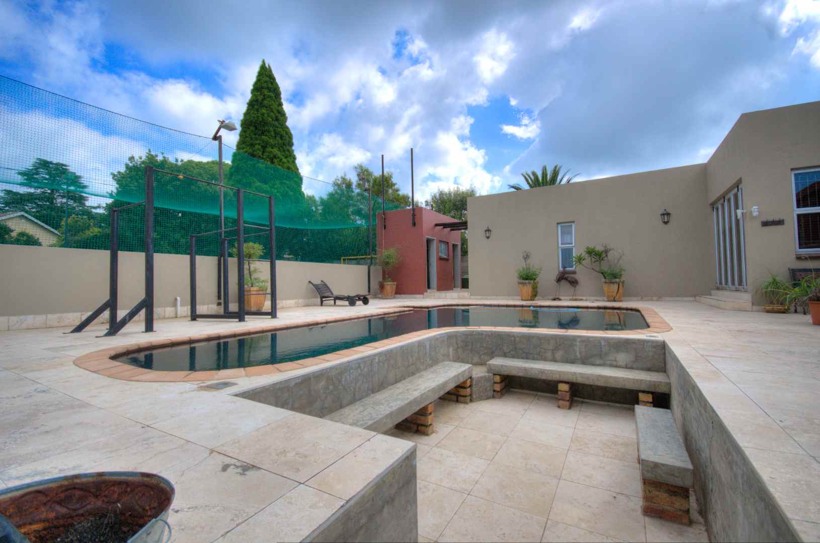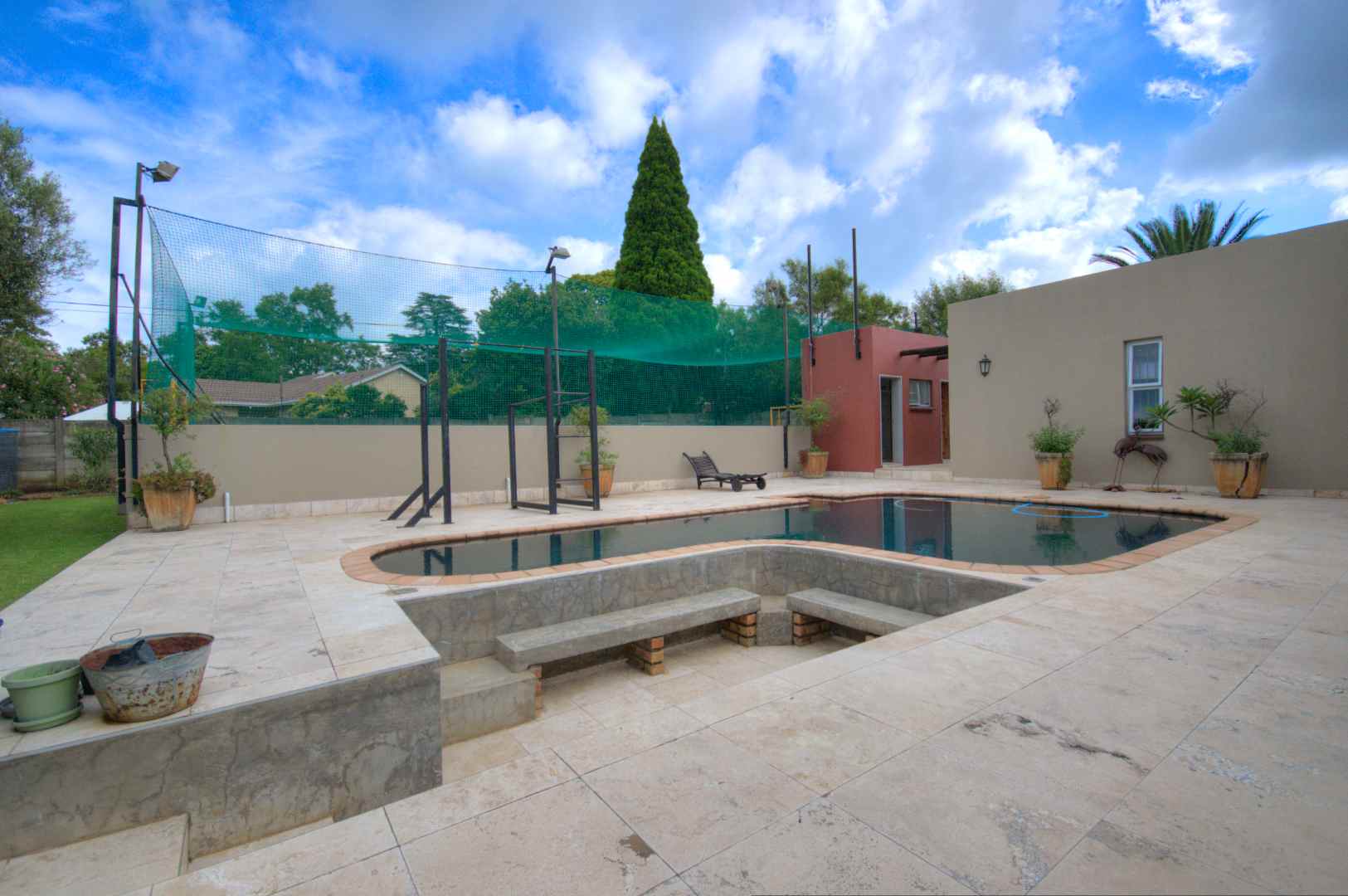 Excellent Position! Welcoming entrance hall, double french sliders leading to private lounge, massive open plan dining room leading to reception area open plan onto full mod fitted kitchen with gas hob and Technistone quartz stone counter tops, separate scullery, split level pajama lounge with built in pub leading onto full theatre entertainment room. aluminum sliders onto enormous covered entertainment area with pizza oven and electric oven. main house comprises 4 bedrooms and 2 neat bathrooms (shower). Designer pool with firepit ,2 x outside toilets including shower plus awesome soccer filed equipped with full goals and netting. 3 garages, full staff quarters plus loads more! not the everyday house you walk into! be different,,,,ACT NOW!