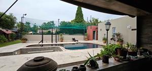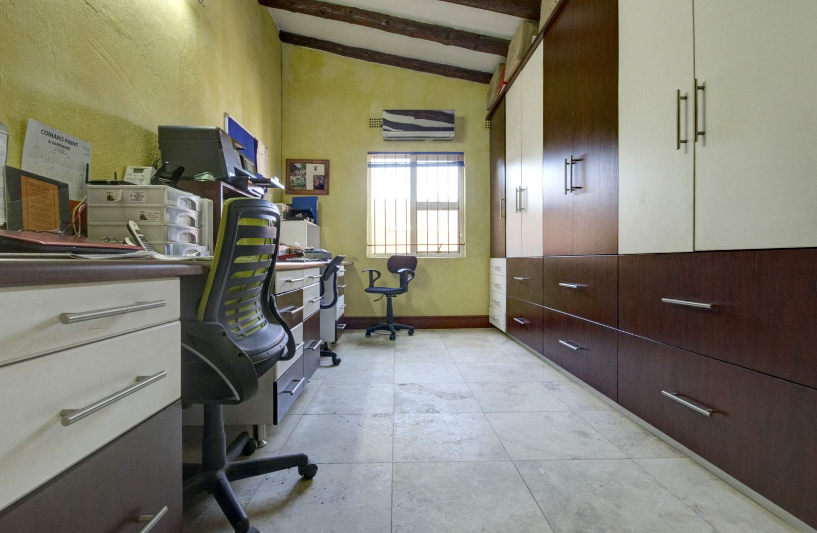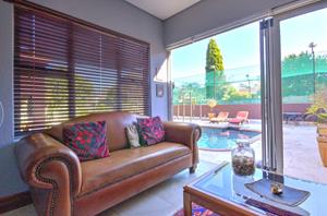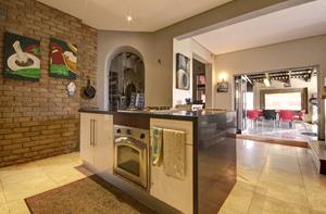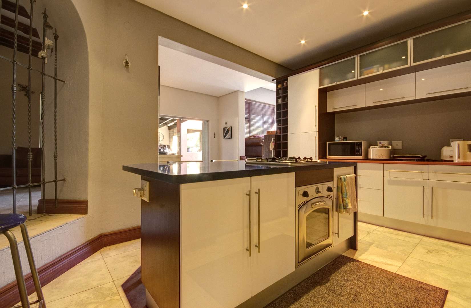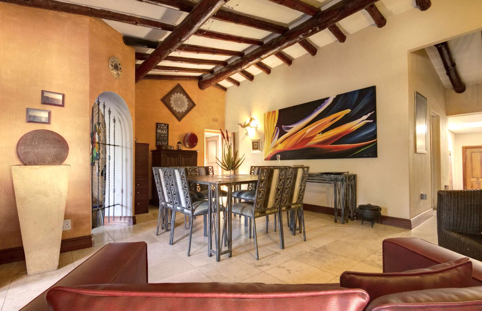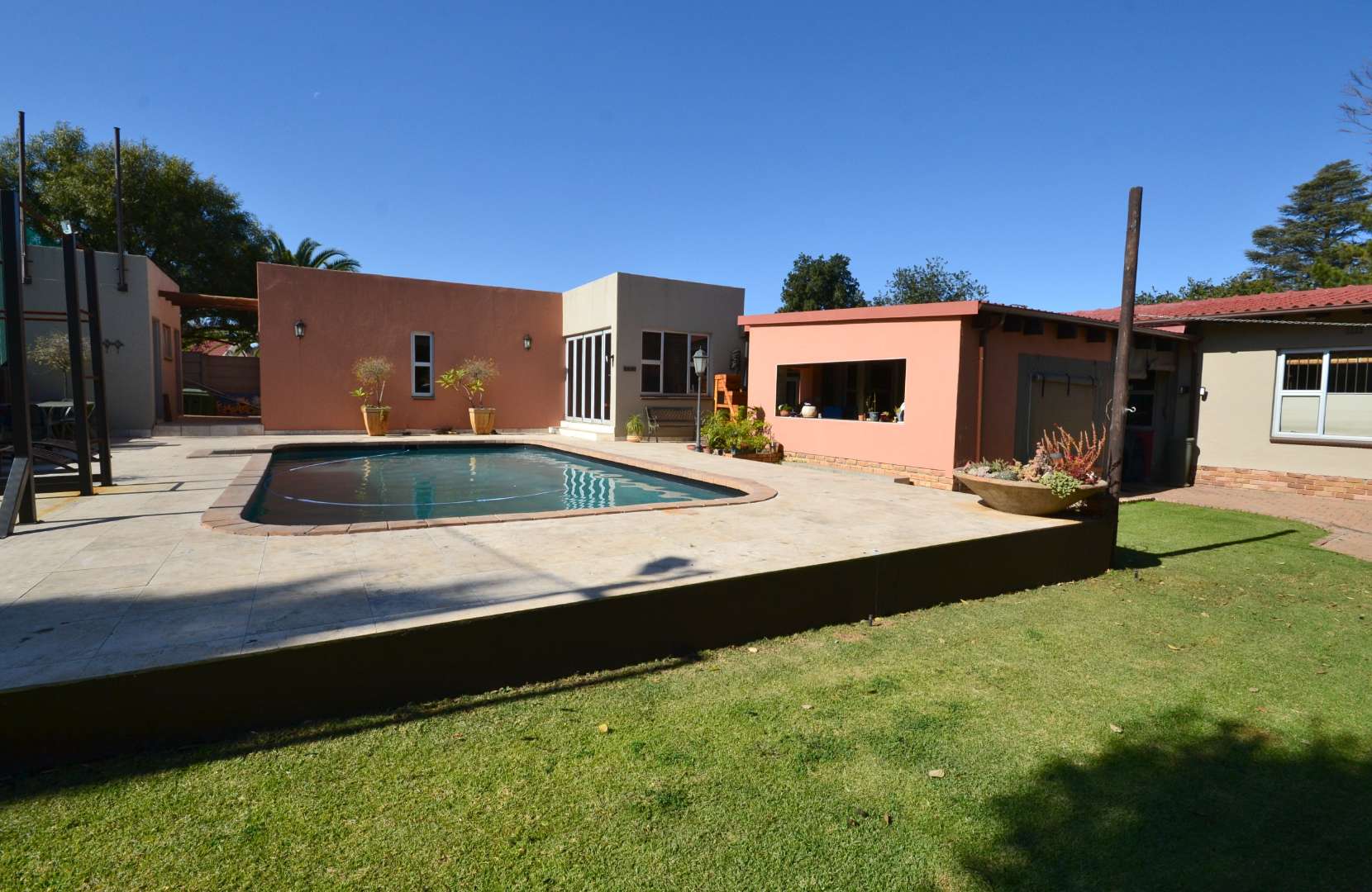 Excellent Position! Welcoming entrance hall, double french sliders leading to private lounge, massive open plan dining room leading to reception area open plan onto full mod fitted kitchen with gas hob and Technistone quartz stone counter tops, separate scullery, split level pajama lounge with built in pub leading onto full theatre entertainment room. aluminum sliders onto enormous covered entertainment area with pizza oven and electric oven. main house comprises 4 bedrooms and 2 neat bathrooms (shower). Designer pool with firepit ,2 x outside toilets including shower plus awesome soccer filed equipped with full goals and netting. 3 garages, full staff quarters plus loads more! not the everyday house you walk into! be different,,,,ACT NOW!