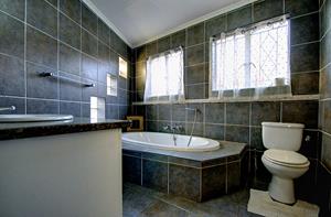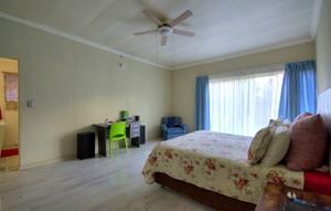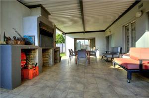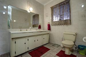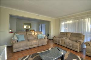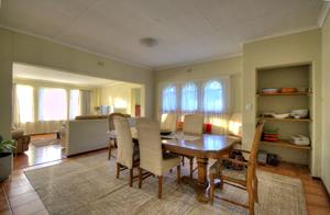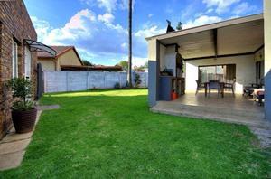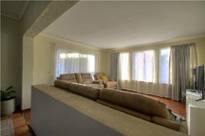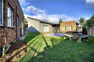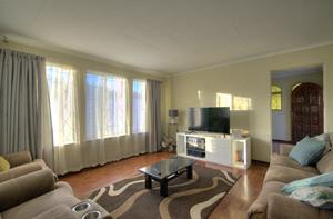 Excellent position in quiet cul-de-sac, and within walking distance to everything! Entrance hall, massive lounge, family room, 3 spacious bedrooms, 2 bathrooms(shower) study, covered entertainment patio with built in braai overlooking sparkling pool. Fully fitted kitchen , 3 garages( 2 currently used as a studio with laminate floors), full staff quarters. PLUS cottage comprising 2 large bedrooms, 2 bathrooms, giant lounge and dining room, large kitchen plus separate laundry.