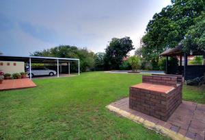 In the heart of Area - beautiful sought after street! 3 bedrooms, 2 bathrooms (shower), massive lounge, dining room, sunken tv/family room, fitted kitchen. Giant patio with retractable awning overlooking sparkling pool and lapa set in established gardens. Garage with drive through to 3 carports at back of property doubling up as an enormous entertainment area. Hurry