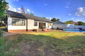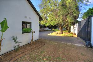 Totally redone and super neat with alliminium windows throughout. Absolutely neat and ready to move in. 2 massive bedrooms (laminate floors) , brand new upmarket bathroom, massive lounge with double sliders leading onto tiled patio overlooking sparkling renovated pool set in beautiful gardens with century old trees. Full fitted kitchen , full staff accommodation, double garages plus so much more! Loads of room for expansion. Suitable for a small family wanting total privacy and independence....why buy a townhouse or cluster??