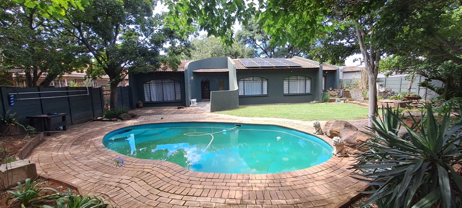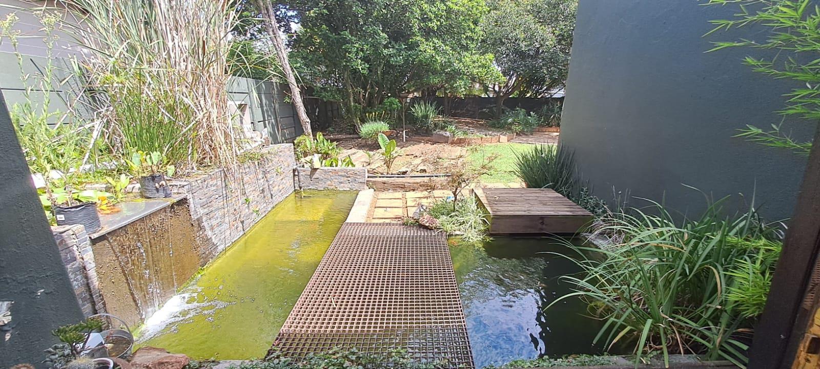 Inside, generous living areas create a natural flow from the spacious lounge/family room to a welcoming dining space and a well-appointed kitchen fitted with a gas stove. Three well-sized bedrooms offer comfortable accommodation, complemented by two bathrooms, including a main en-suite with shower. The main bedroom enjoys direct access to the garden, where a swimming pool overlooks a tranquil koi pond — a standout feature that elevates the sense of serenity.