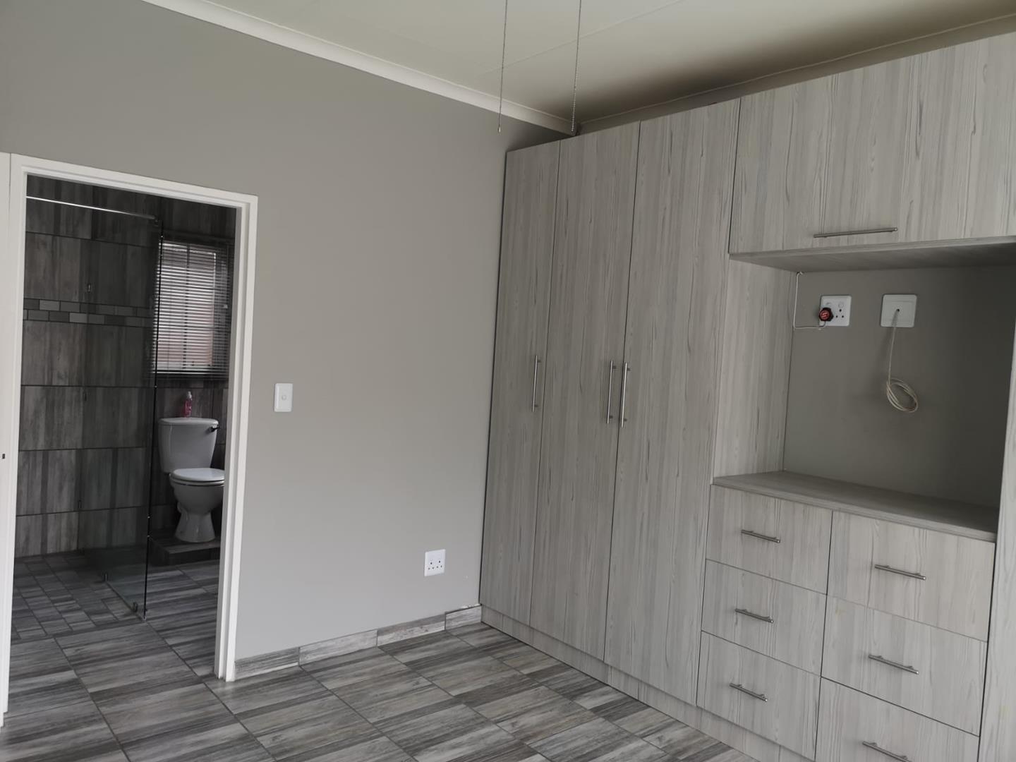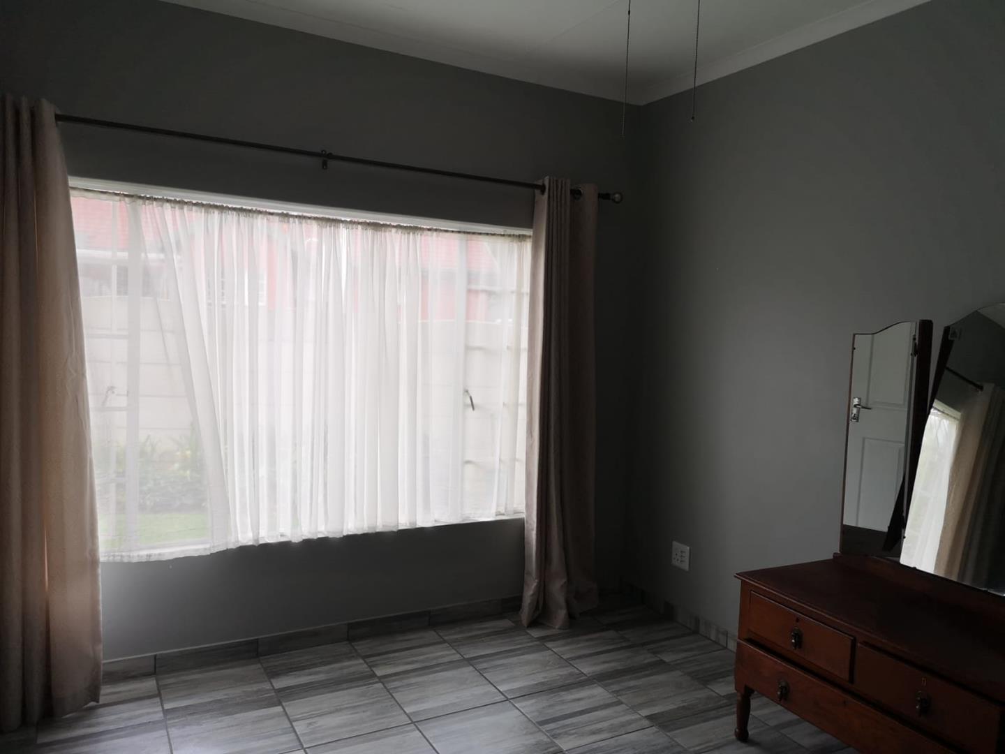 Lovely modern cottage offering you 1 bedroom with built in cupboards, 1 bathroom. Open plan lounge and kitchen with a gas stove. 1 automated garage and garden.