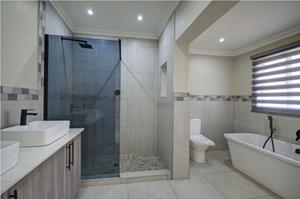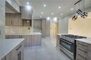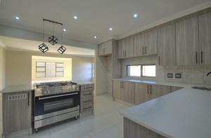 Impeccable upmarket finishes throughout. Large open plan living room upon entry flowing into double sized family room with sliders onto covered patio with built in braai. Giant dining room onto ultra-modern 62SQM kitchen with separate scullery room, separate laundry room with access into oversized auto double garages.