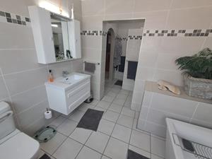 The home boasts three generous bedrooms, each with built-in cupboards, and two modern bathrooms, including a master en-suite. Additionally, there is a private guest room complete with its own bathroom, ensuring comfort and privacy for visitors.