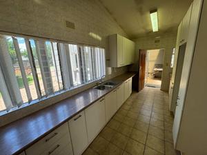 An open plan Dining area (with built-in shelving) connects to the Kitchen with lots of Bic's and sufficient (under counter & other) spaces for appliances