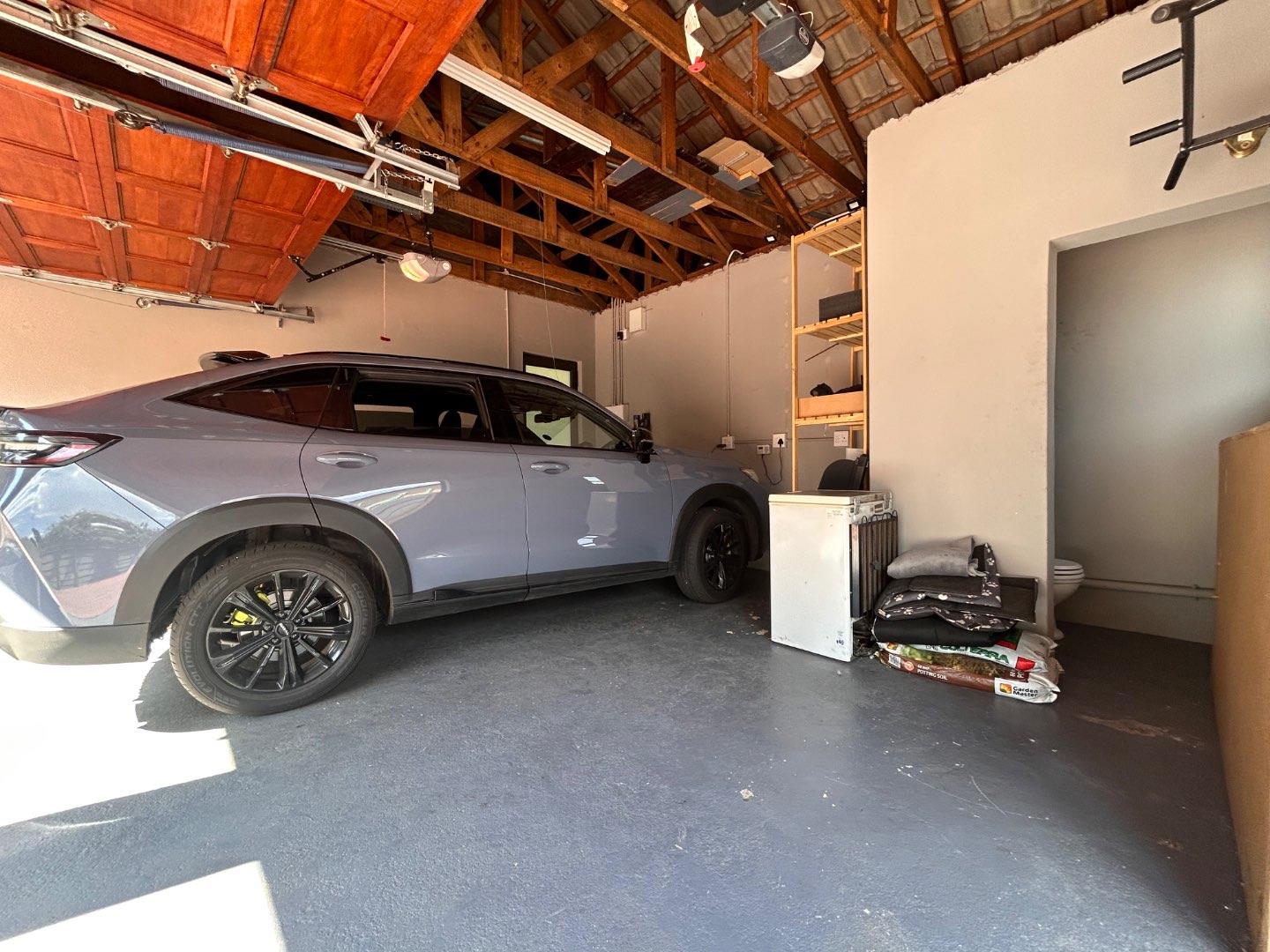 Additional features include aluminium window frames throughout, two outdoor storage sheds, a double automated garage with direct access into the home, a convenient sliding door to the side yard, and a private garage cloakroom with basin.