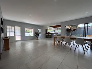 From the moment you enter, an immediate sense of space and calm prevails. The expansive open-plan living and kitchen area is flooded with natural light, enhanced by shadowline ceilings, tasteful downlighting and high-quality fitted blinds throughout. Generous proportions easily accommodate both formal dining and relaxed lounge living, while a striking built-in bar with exposed beams and pendant lighting creates a sophisticated focal point for entertaining.