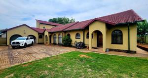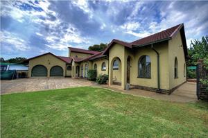 Enormous home with 2 entrances! Still some renovations including kitchen underway whilst marketing commences. Entrance to lounge, huge dining room, family room, TV room, study, 4 masisve bedrooms (main bed upstairs at 80sqm with en suite bathroom and balcony overlooking gardens), 3 bathrooms in total. This winner is situated on a corner stand with 2 entrances making it possible to split into 2 separate dwellings. One Entrance leading to enormous double garages and storeroom with double volume ceilings making it ideal for a cottage conversion at roughly 100 sqm. Main entrance leading to double garages, double carports and loads of parking for many vehicles. Swimming pool, enormous covered entertainment room overlooking gardens are some of the many extras here. Call now!