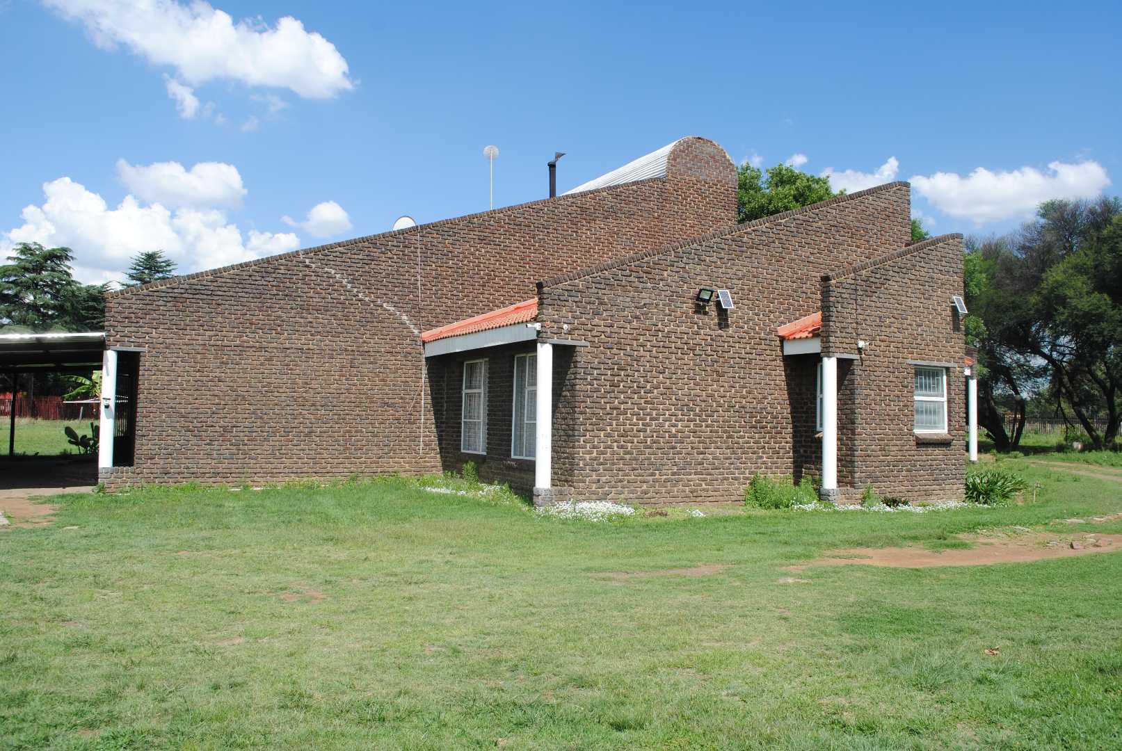 Perimeter: Palisades and prefabricated walling. Motorised gate