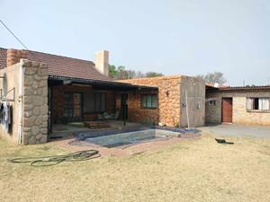 A Spacious family home with 4 bedrooms or 3 bedrooms and a study, lovely size kitchen, lounge and dining room leading to entertainment area. The house has 2 bathrooms, pool is in need of attention and flat has a lounge, kitchen, bathroom and 2 rooms.