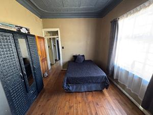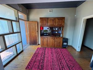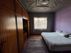Lovely vintage printed ceilings, ceiling fan, wooden flooring