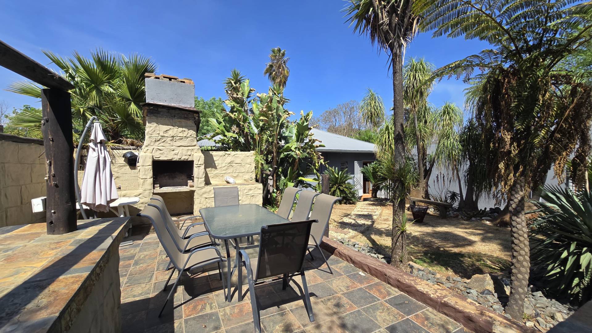 The large manicured garden featuring an open Patio with a Built-in Braai