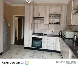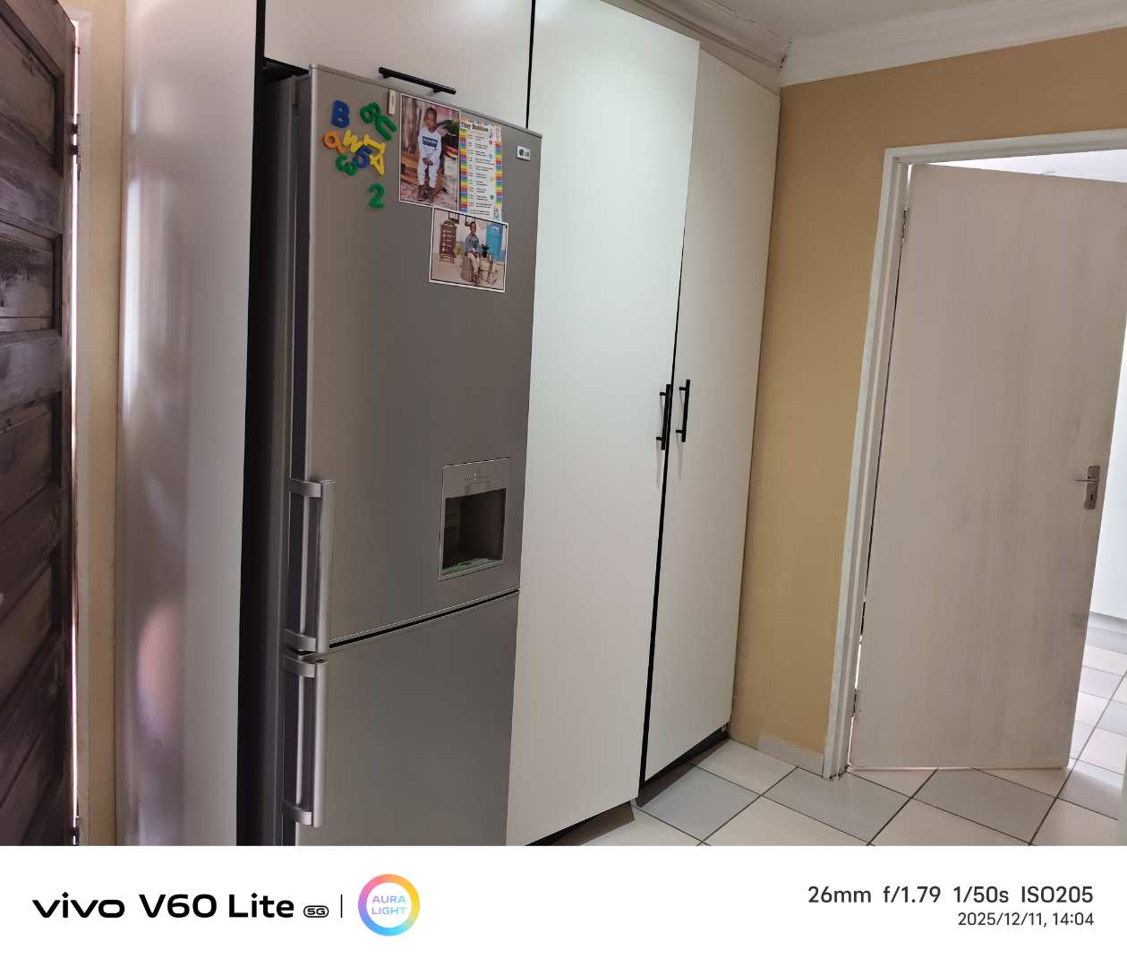 The modern kitchen is offers plenty of cupboard space, a walk-in pantry, a gas stove with an electric oven, and a double sink. Designed for functionality. There is room for a double-door fridge and two additional appliances.