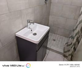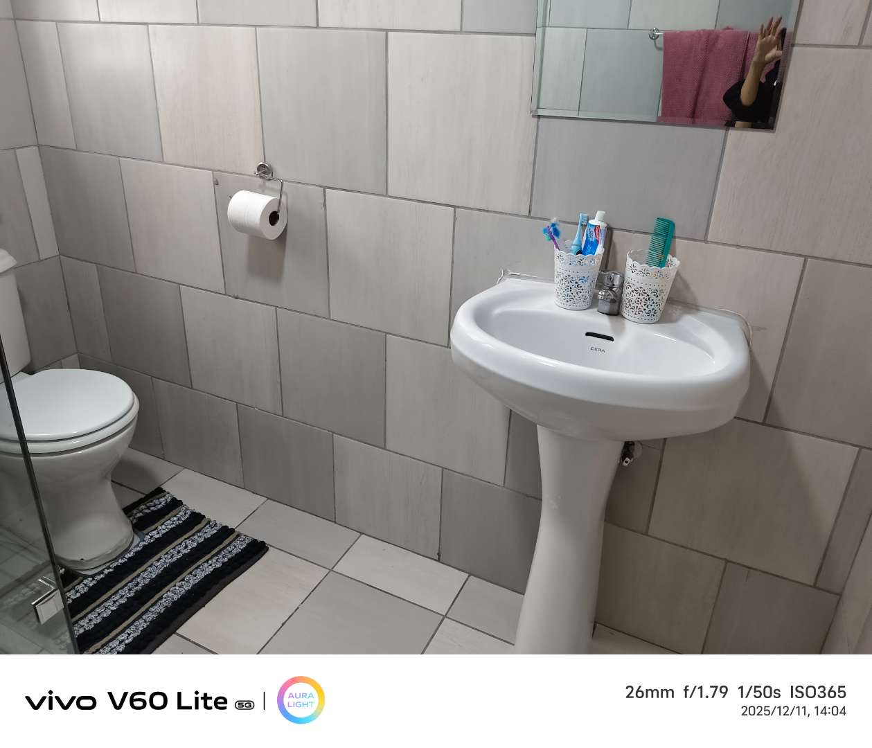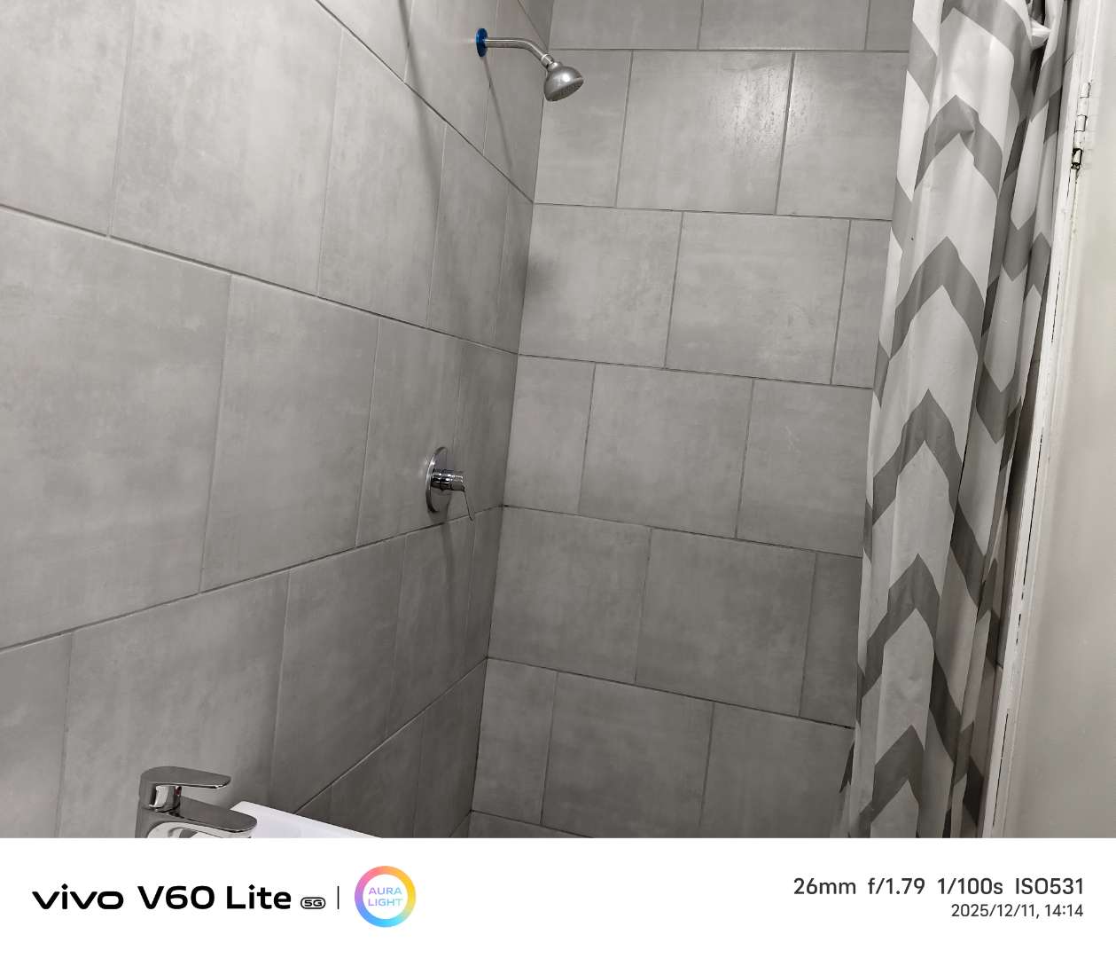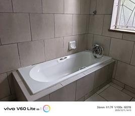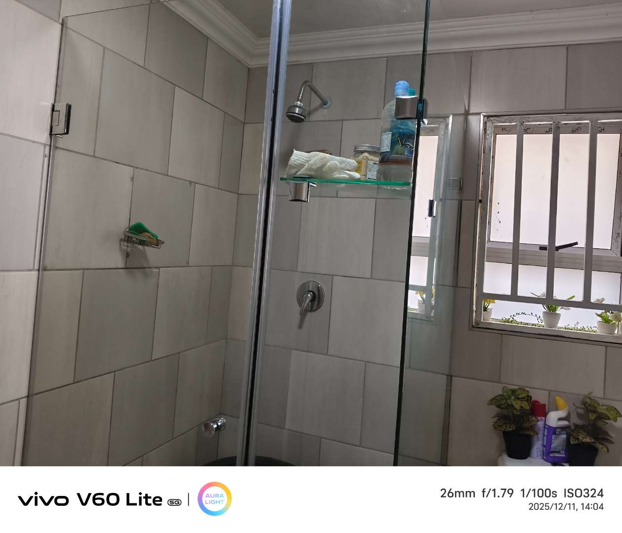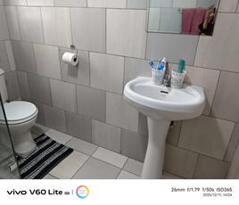 The tiled main bedroom is spacious and both bedrooms have built in cupboards. The modern bathroom includes a shower, toilet, and basin.