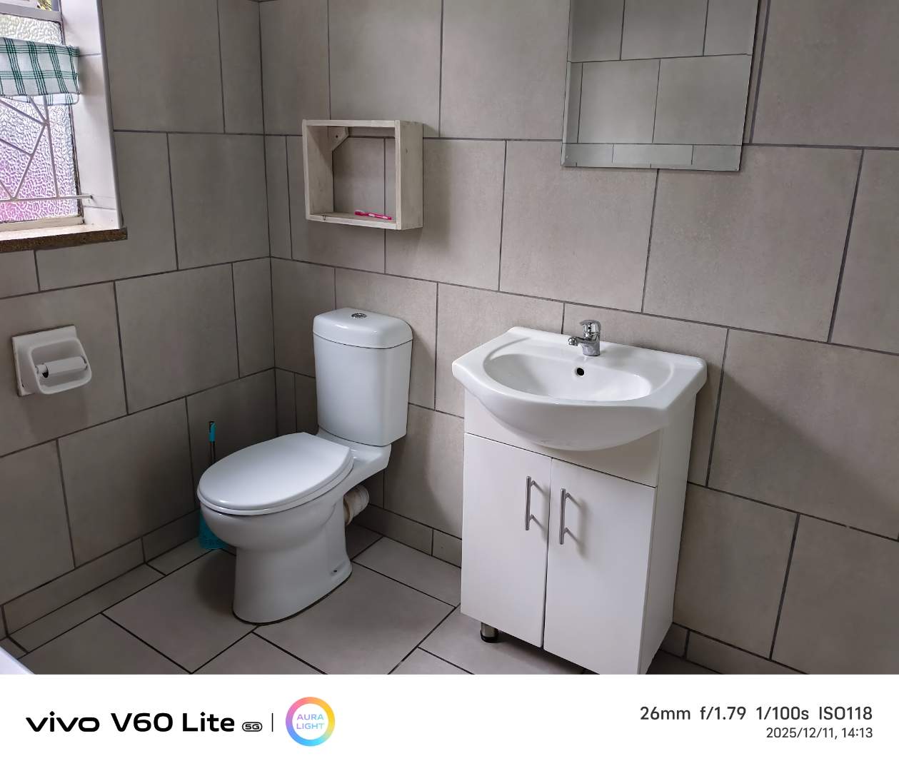 This cosy and convenient cottage 1 tiled bedroom with built in cupboards. This cottage provides an open-plan design which connects the living area and kitchen, which is equipped with a two-plate gas stove. The bathroom includes a shower, toilet, and basin.