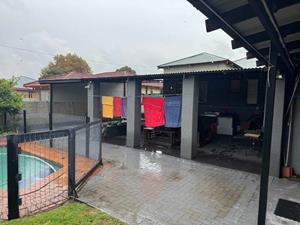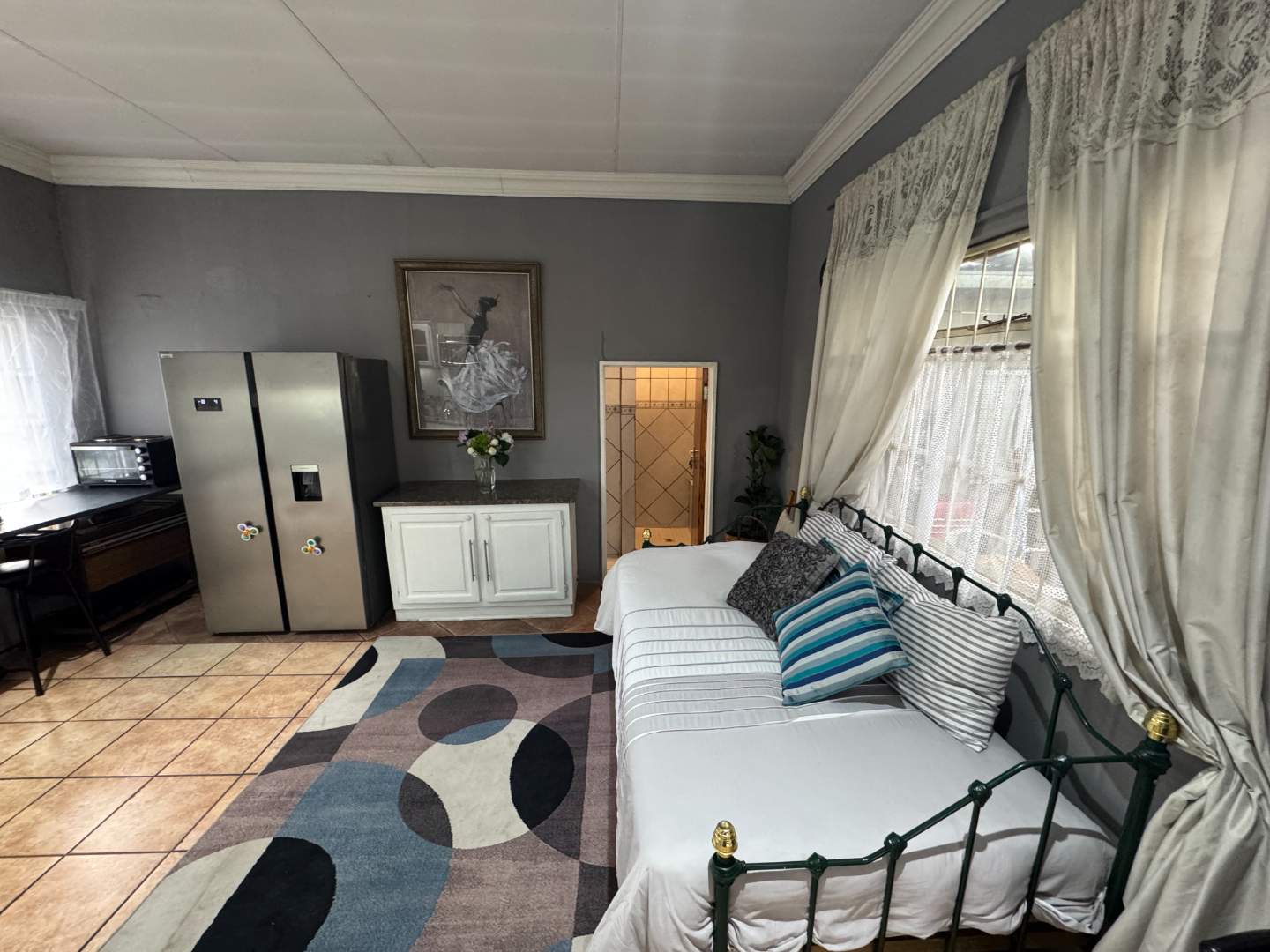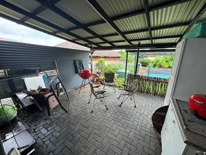 The separate Flatlet with its own patio, lounge, modern kitchen, TWO bedrooms, main bedroom with lots of Bic's, bathroom, private parking And its own entertainment area.