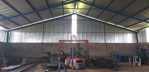 This is a free standing factory/workshop with office and a bathroom, measures 500m2 under roof on a large stand.