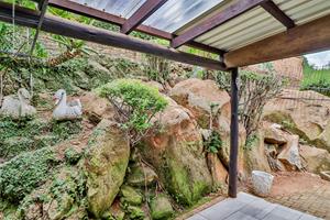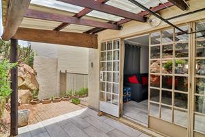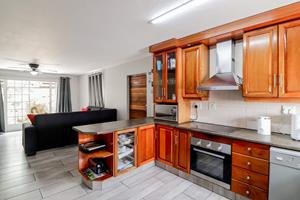 Melamine kitchen open plan to lounge leading to outside covered patio