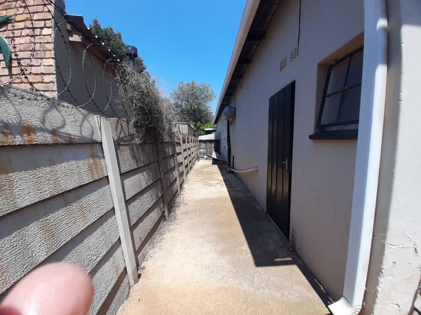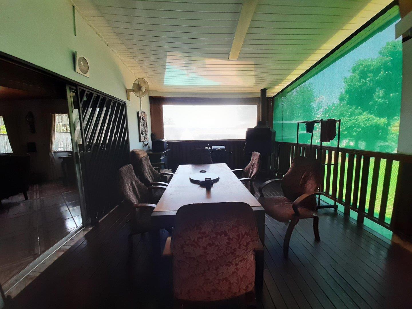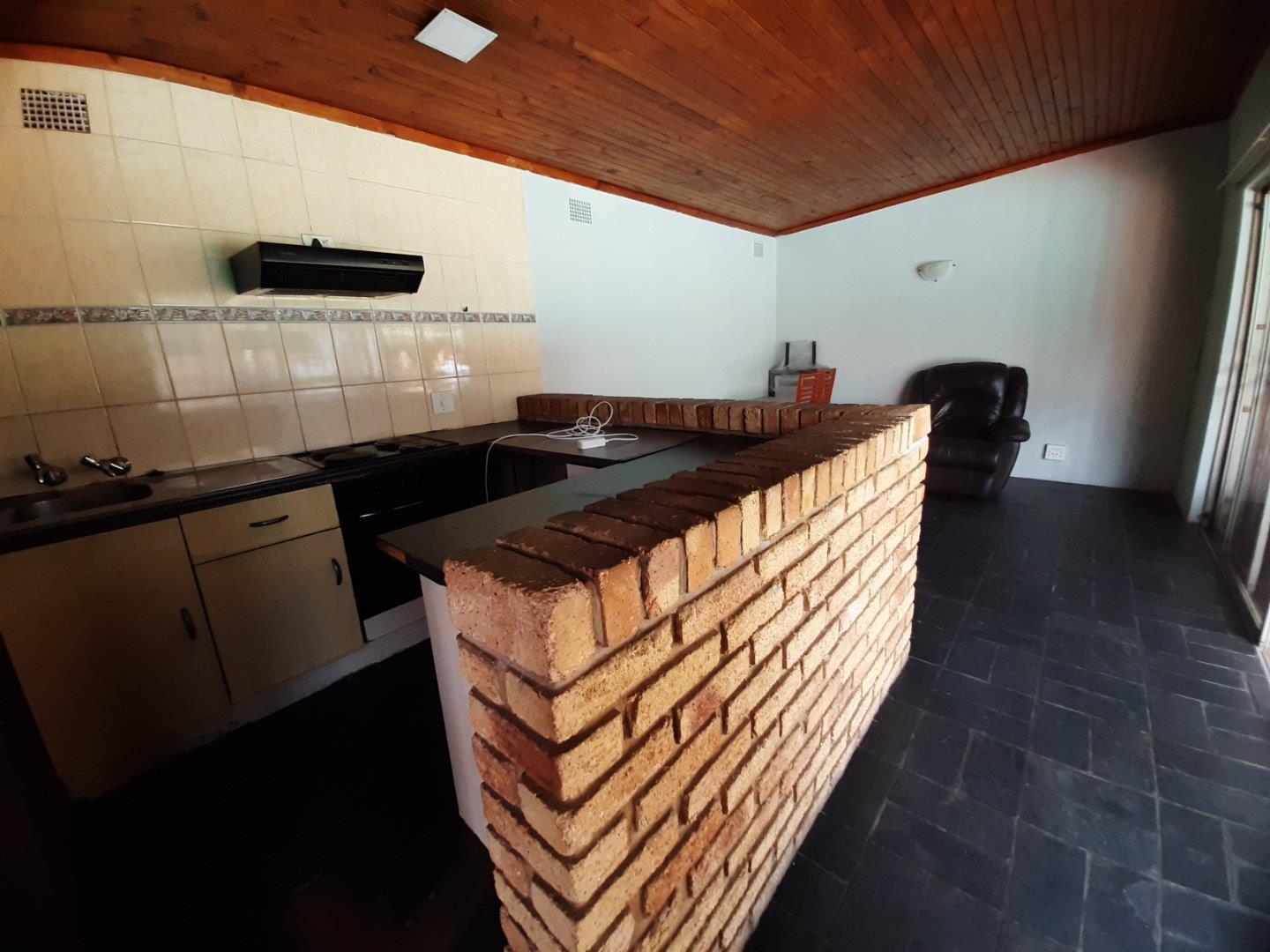 Enclosed patio with built-in braai overlooking the garden