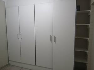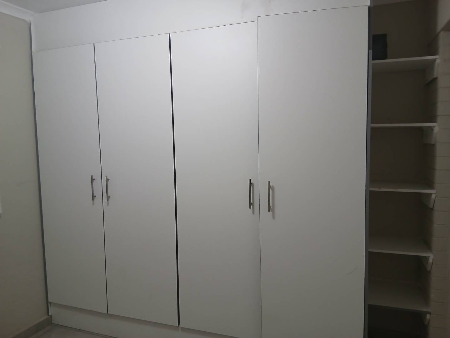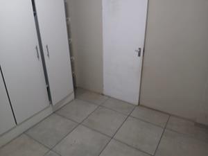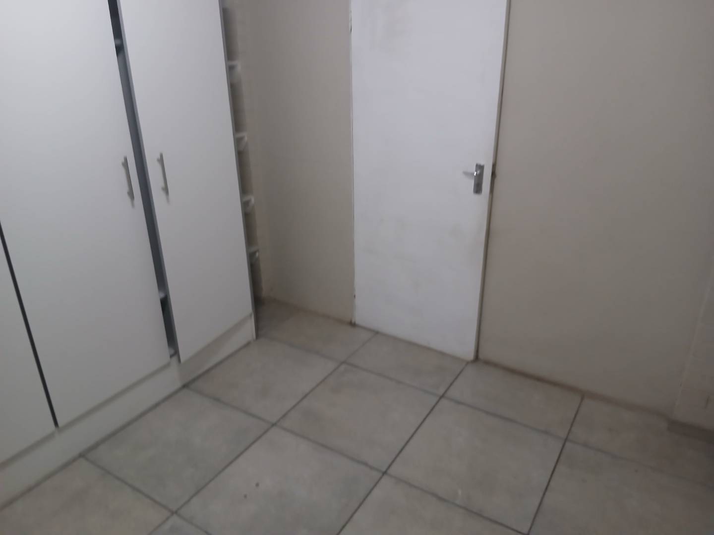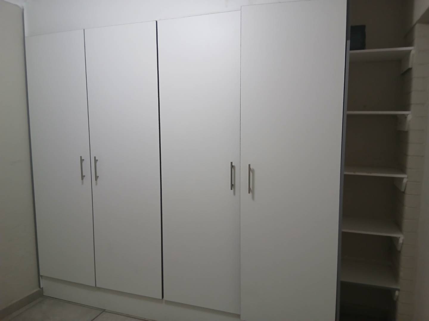 Fully tiled bedroom with built it cupboard