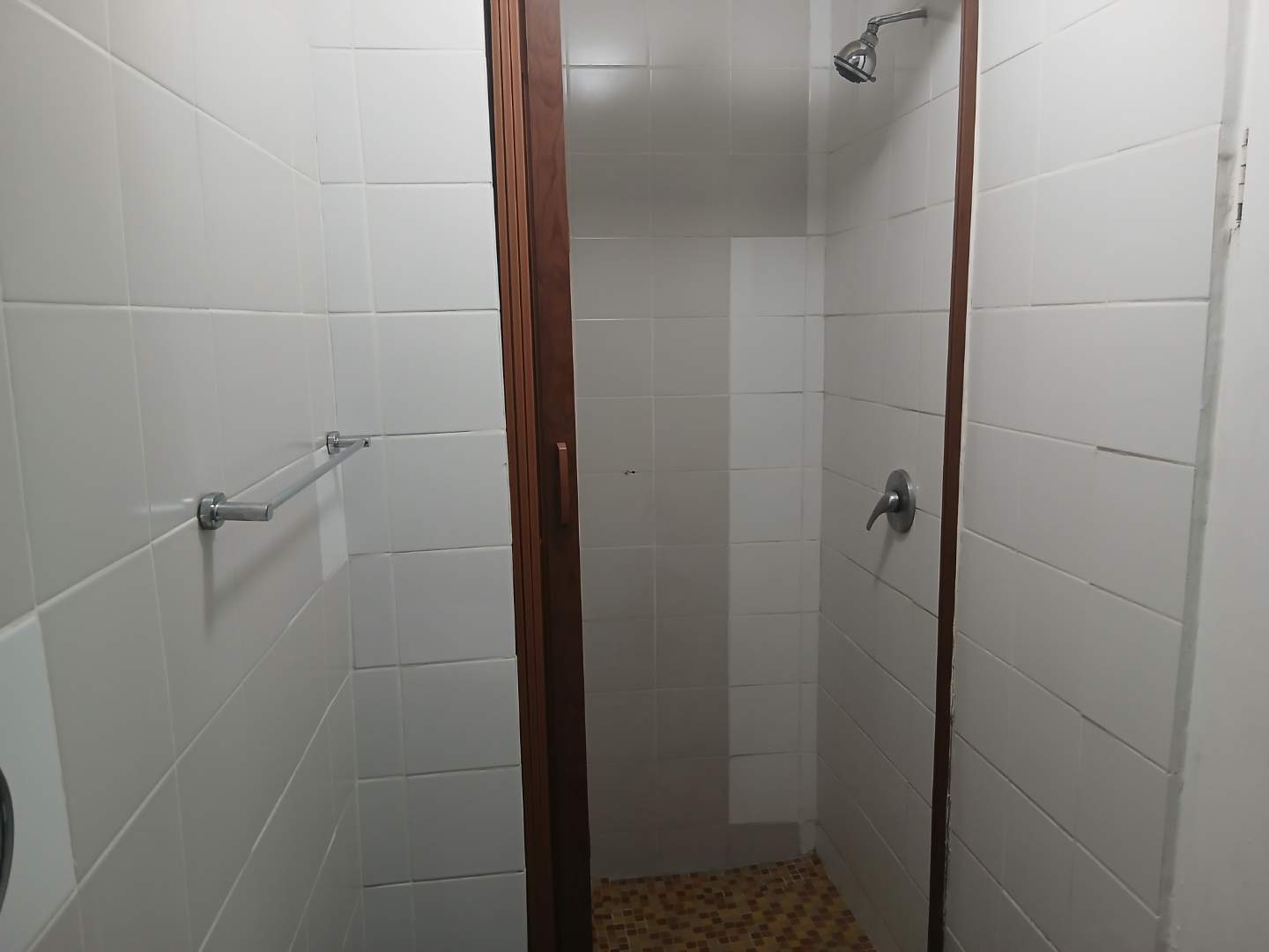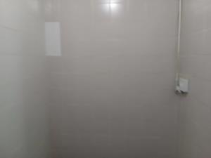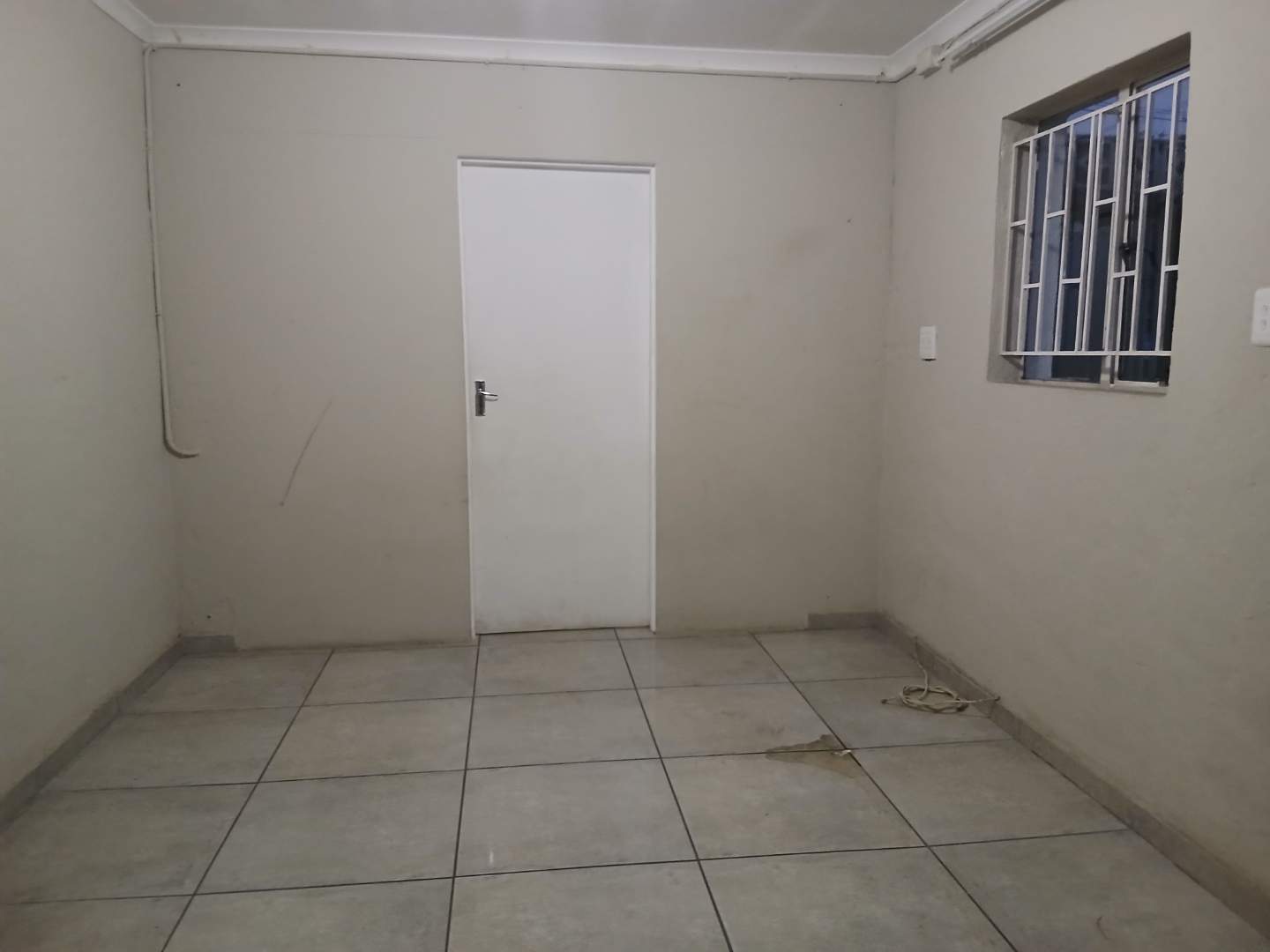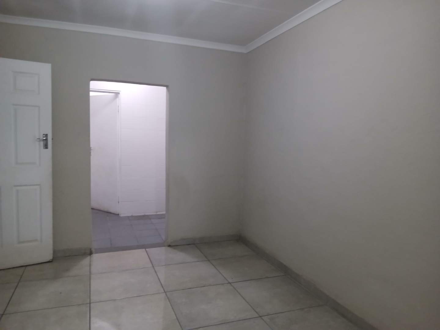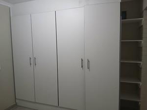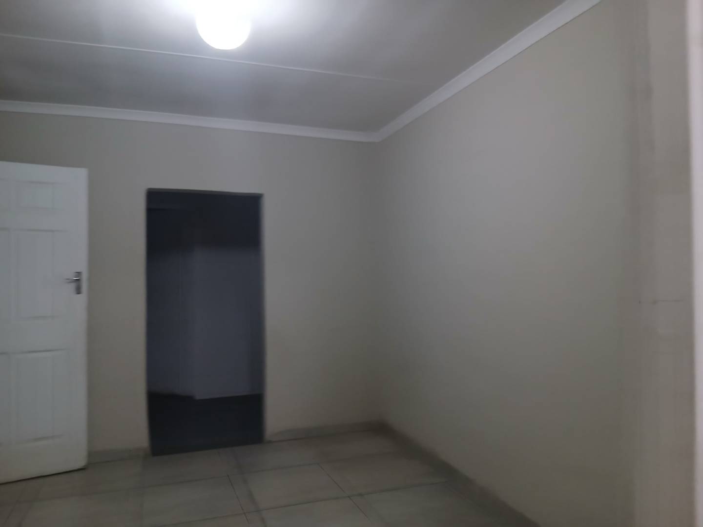 Fully tiled bedroom with built it cupboard