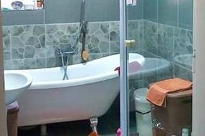 Both bedrooms are bright and spacious, creating calm and comfort, while the designer bathroom adds a touch of luxury with a freestanding tub and walk-in shower. A separate toilet and basin offer extra functionality.