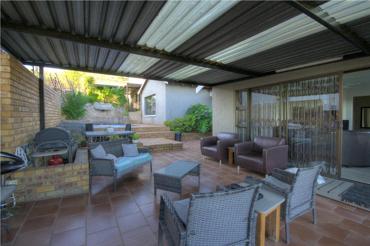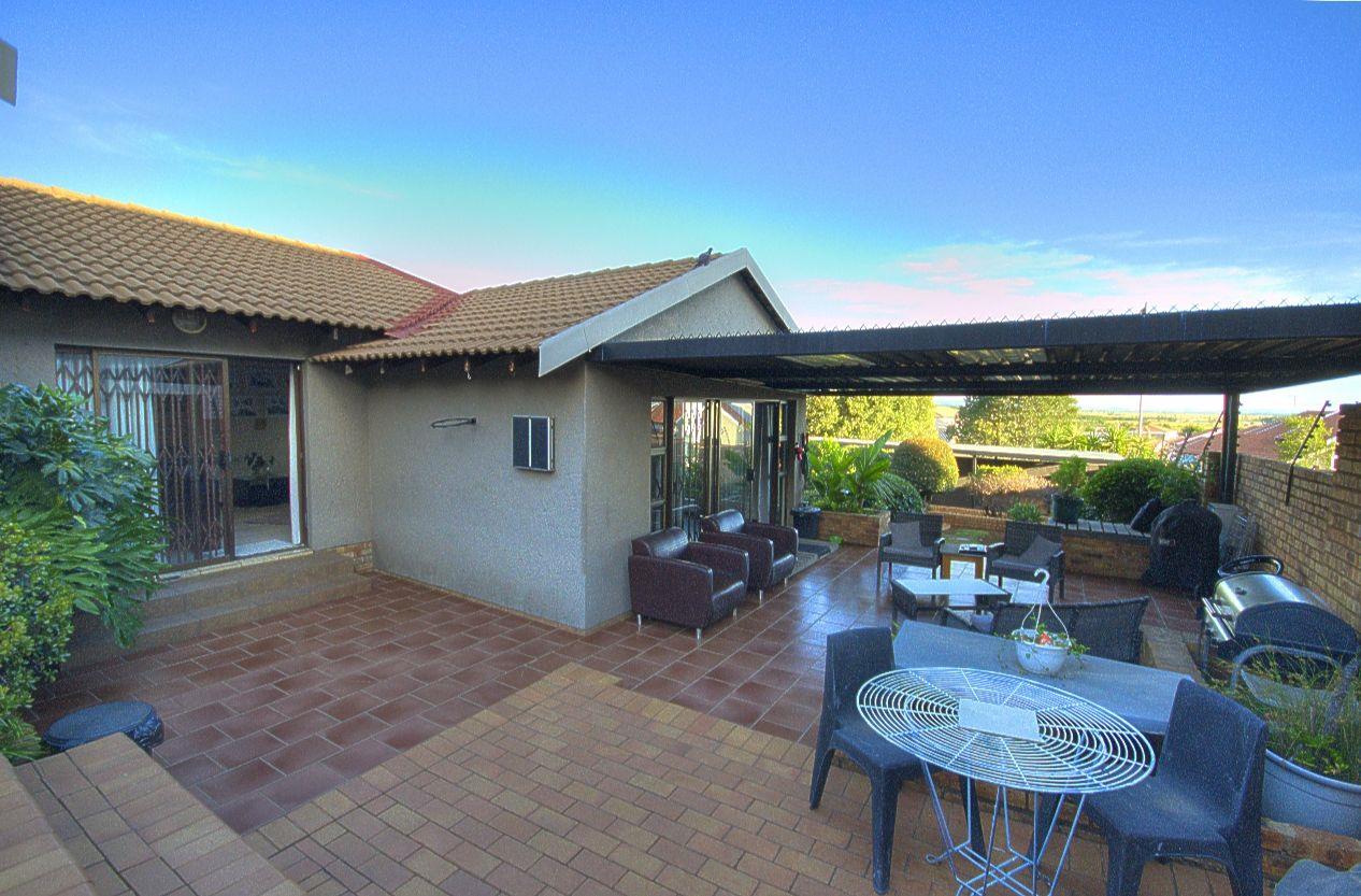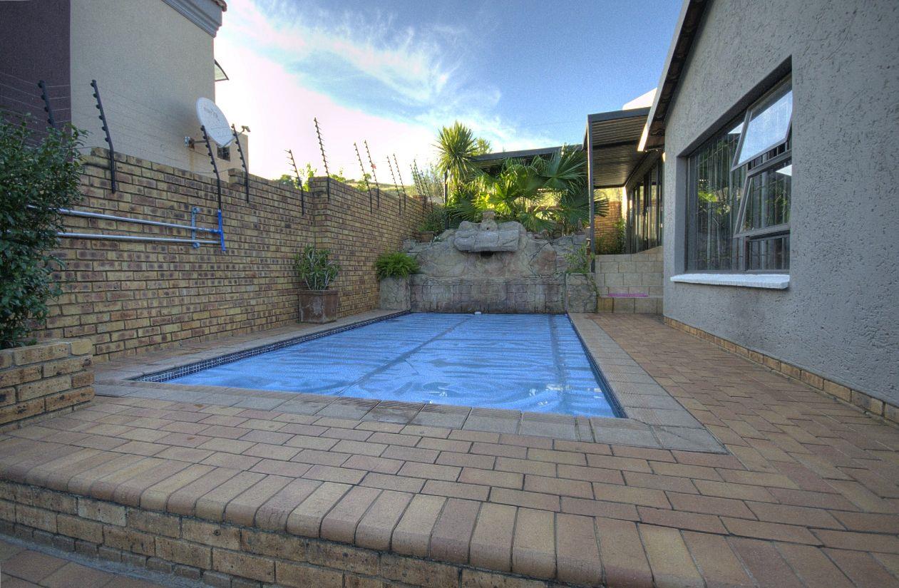 Excellent position near lady of Lebanon School. Welcoming entrance hall, Massive lounge with sliders onto large covered patio overlooking magnificent split level Zen gardens and sparkling pool with exquisite cascade water feature. Main house also offers separate dining room open plan to modern fitted kitchen with separate scullery area. 3 decent sized bedrooms, 2 upmarket bathrooms. Enormous cottage featuring Giant lounge with sliders onto private patio. Giant fitted kitchen, full bathroom, Double sized bedroom. Full staff quarters, storeroom/outside office, double garages, 4 carports, tight security with electric fencing, R110,000 Solar system with expansion capabilities....Hurry, this is priced to go!!