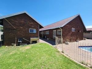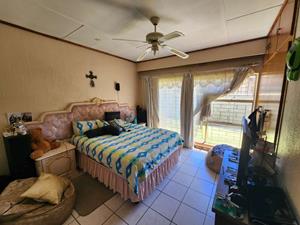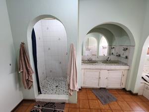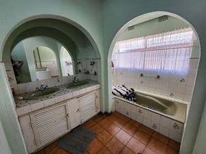 Boasting four generously sized bedrooms with built-in cupboards and tiled floors, this home includes a main suite with a full ensuite and a second large bedroom with its own ensuite and walk-in closet—ideal for conversion into a private flatlet. The guest bathroom is impressively spacious with a bath, shower, and double basin.
