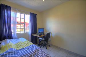 Nothing better at this price in prime Meyersdal! Neat ground floor home offering 2 tiled bedrooms, modern tiled bathroom, fitted kitchen onto large tiled lounge with double French doors leading to covered patio overlooking stunning gardens. Pool and braai area, massive communal gardens plus carport and parking bay! HURRY...this ready for you