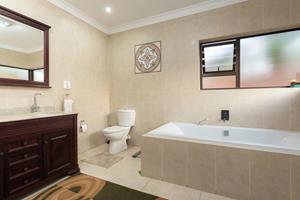 Completing this remarkable home are practical features such as a 3x3m storeroom, domestic quarters with bathroom facilities, automated irrigation, and enhanced security with aluminium windows featuring clear burglar bars and an alarm system linked to Fox Security.