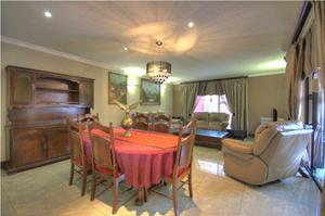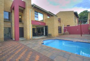 Only 6 full title homes in this sought after estate! Private corner unit with double auto garages(with access into main home), double enclosed carports with automated doors and 2 dedicated parking bays. Welcoming entrance with double volume ceilings leading to spacious tiled lounge (full floor to ceiling aluminum windows) leading to entertainment with room with built in braai and stacker doors onto paved pool area (pool recently renovated and waterfall feature) the double carports can also be used as an extra entertainment patio. Massive tiled lounge open plan to dining room and full mod cherry wood fitted kitchen and separate scullery/laundry with granite tops and gas hob. guest bathroom downstairs. upstairs features 4 Giant bedrooms (laminate floors plus 3 with aircons and 1 with private balcony) 2 upmarket bathrooms (walk in dresser and shower en suite). Many extra's here - fully fledged solar system (8kw inverter and 15kw battery back up) , pre-paid electricity plus staff quarters with toilet and shower PLUS so much more, just come and View- CALL NOW!