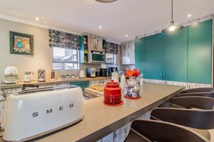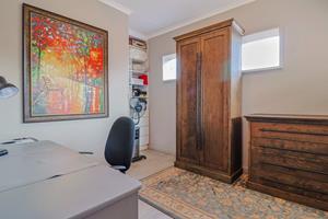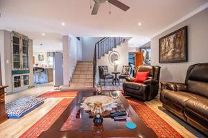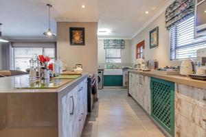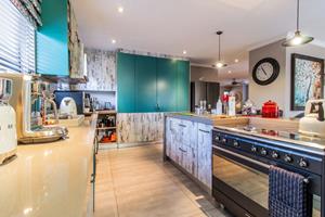 Downstairs, the home flows seamlessly with three generously sized living areas, ideal for entertaining or enjoying cozy family moments. The open-plan kitchen is a chef’s delight, featuring ample cupboard space, a Smeg gas stove and a separate scullery for added convenience.