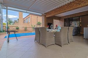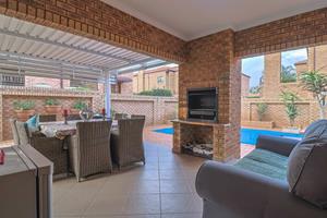 Step outside onto the covered patio, complete with a built-in braai, overlooking the well-maintained garden and pool, equipped with a pool net for safety.