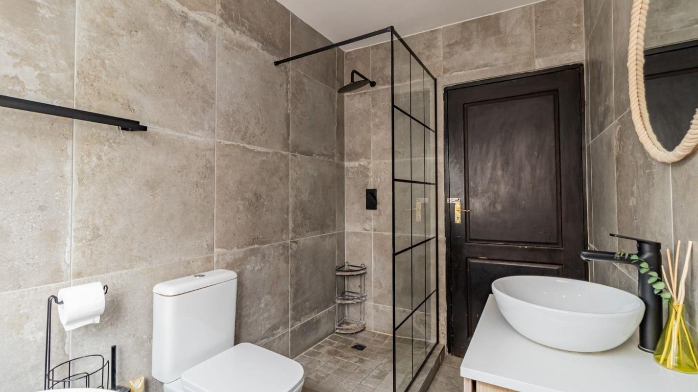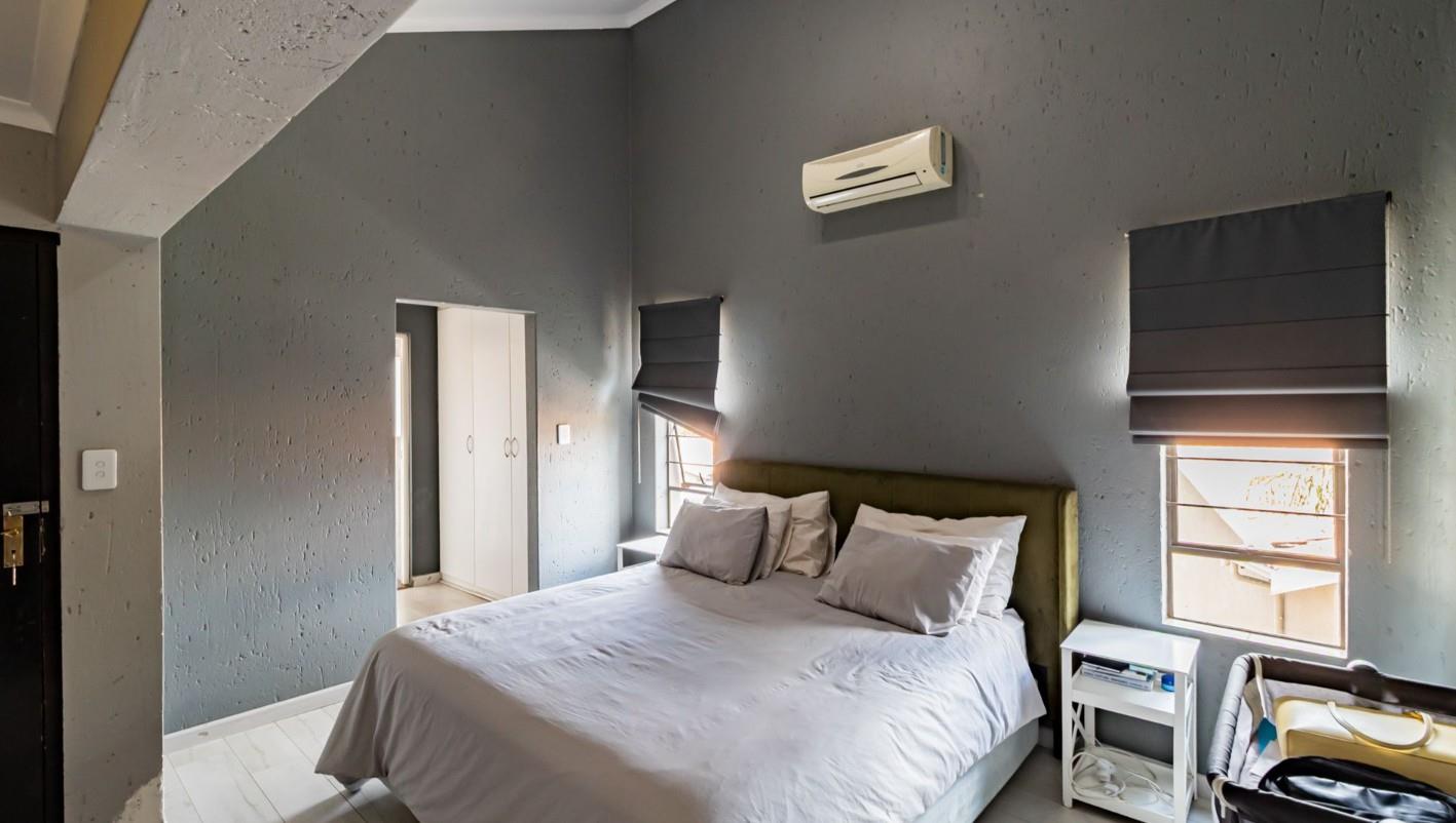 This contemporary home offers three well-sized bedrooms with built-in cupboards, including a main en-suite with air conditioning for added comfort. Two sleek bathrooms, along with a convenient guest toilet downstairs, cater perfectly to both family living and entertaining.