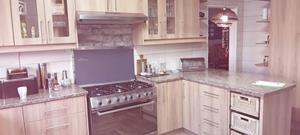 Modern kitchen with gas hob, electric oven, and gas leak detection system