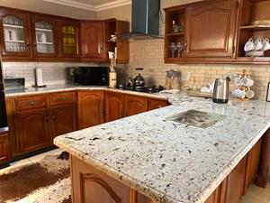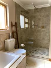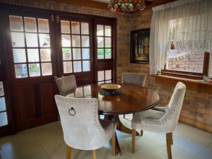 The kitchen is every home cook’s dream. Adorned with gorgeous hard wood cabinetry and quartz caesarstone countertops. There is a five plate gas burning cooker and eye level oven. Large walk-in pantry, separate scullery and separate laundry. Enjoy breakfasts in the dining area of the kitchen.